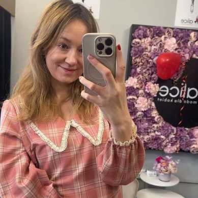 Koszula z kołnierzykiem beżowa z różową lamówką Purpura